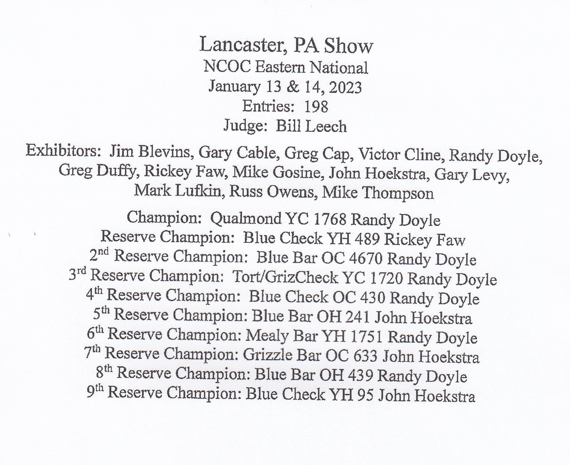 2023-01-13 Lancaster PA Show NCOC Eastern National