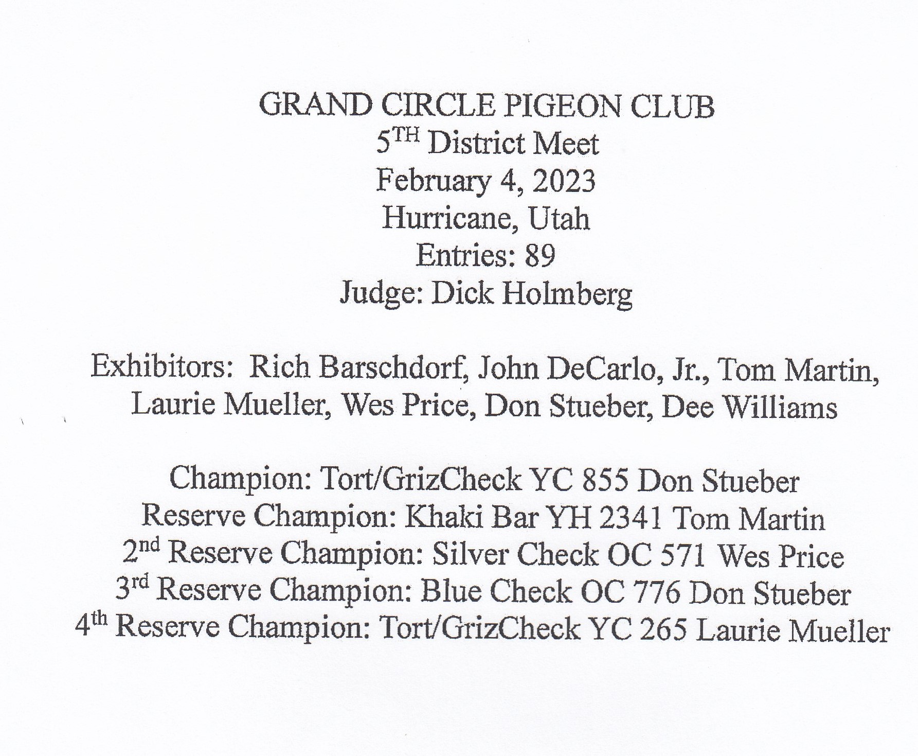 2023-02-04 Grand Circle Pigeon Club - Hurricane, UT